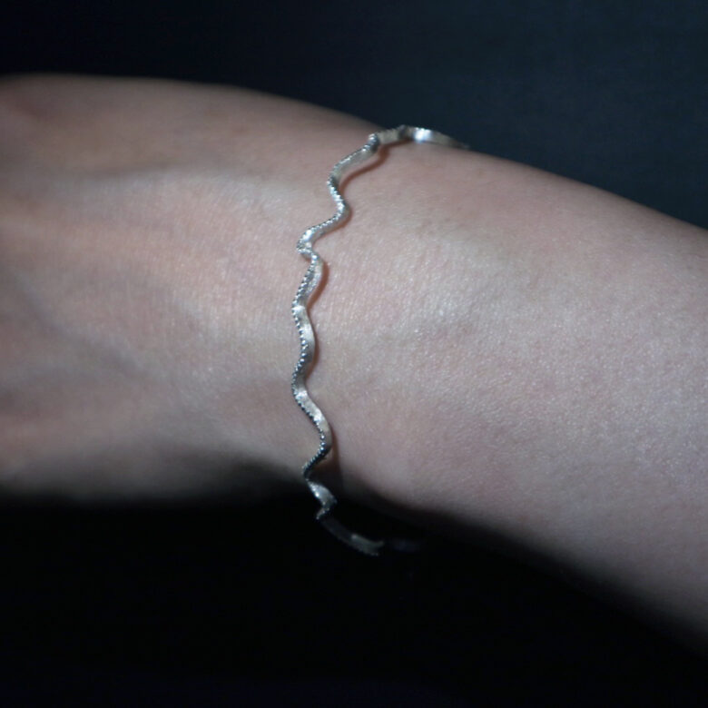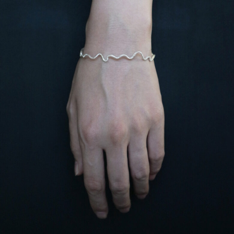 波打ったようなウェーブの形状が、手首もとを目立たせます。