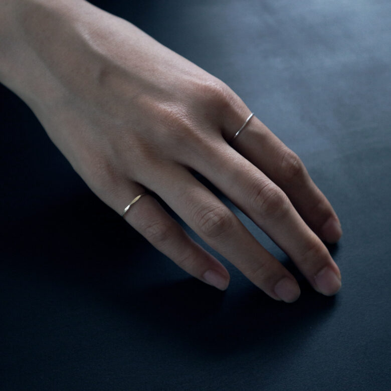 その日の気分やファッション、また他のリングのとの相性や重ね付けによってリングのつける向きを変えてみてください。