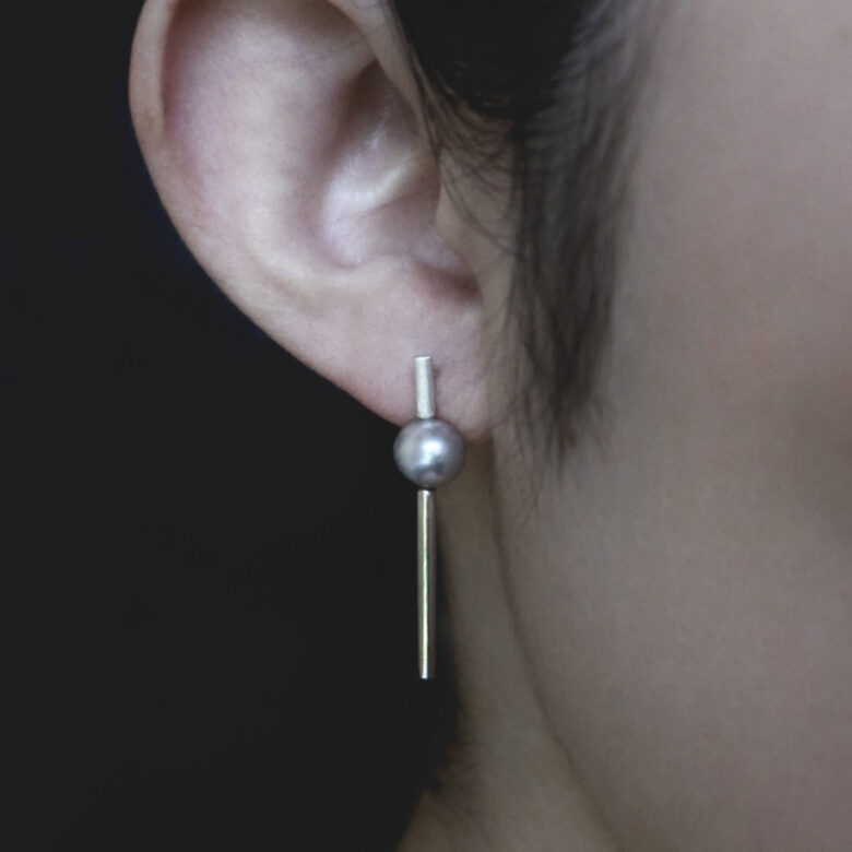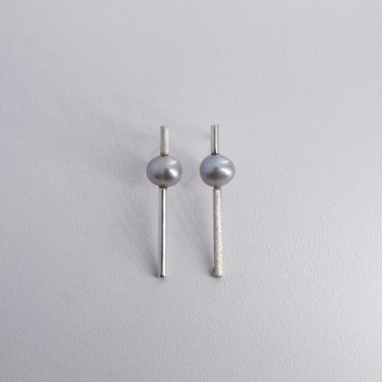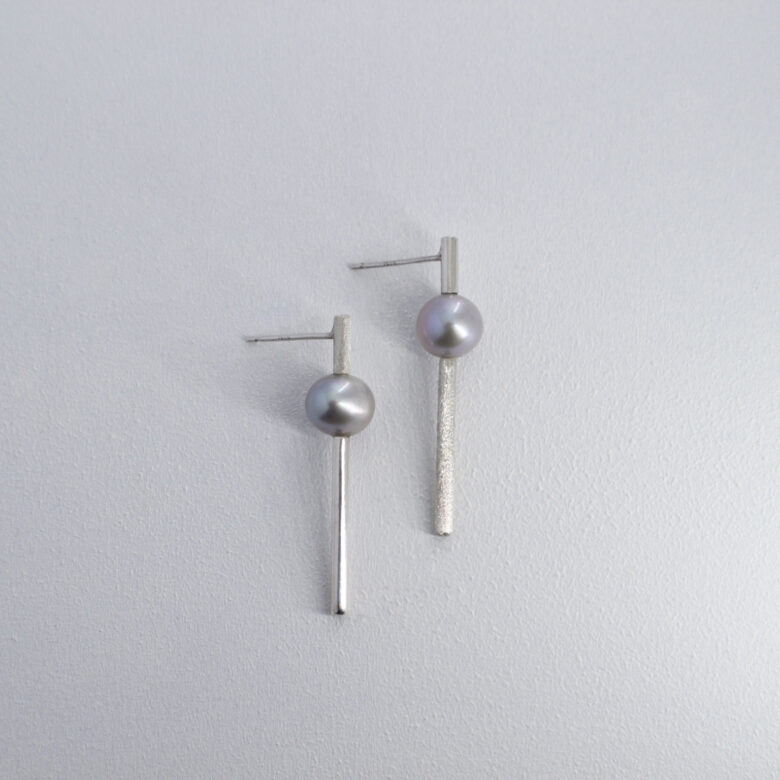真珠のグレーやパープルのような色味が、銀との相性によく、上品で程よい華やぎがある作品となっております。